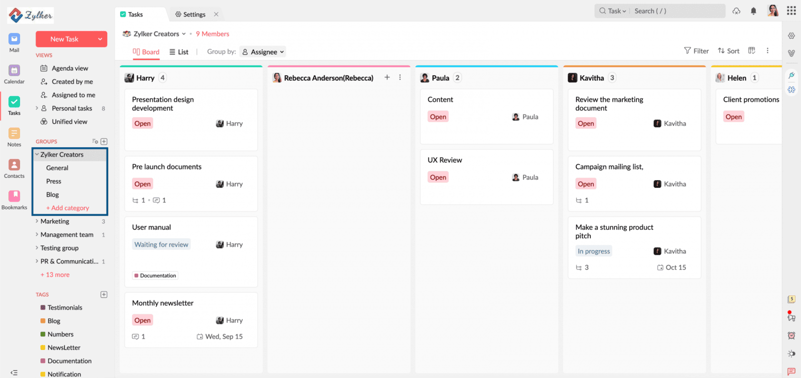 O Zoho Notebook oferece notas digitais e personalizáveis, com organização por cores e capas customizáveis.