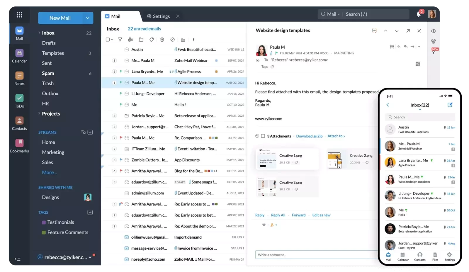 O Zoho Mail é uma solução de e-mail comercial confiável e segura, personalizada para as necessidades de comunicação de sua organização, com recursos de colaboração aprimorados.