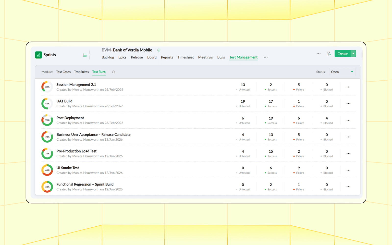 - Visualize resultados, registre defeitos instantaneamente e obtenha visibilidade da cobertura e qualidade dos testes.